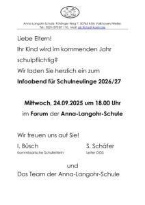 zum Infoabend der Schulneulinge 26/27: